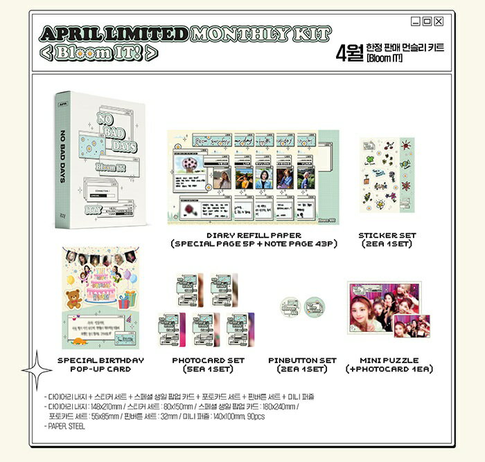 ITZY イッジ APRIL LIMITED MONTHLY KIT (2 YEARS WITH ITZY) / NO BAD DAYS 2周年 4月限定キット