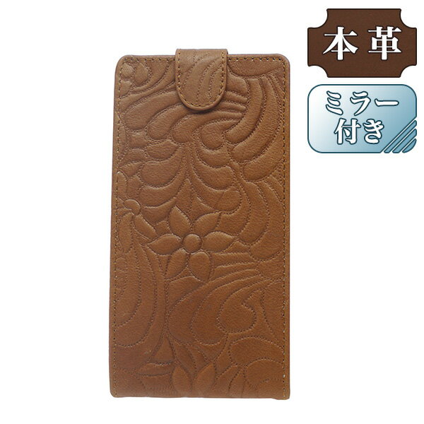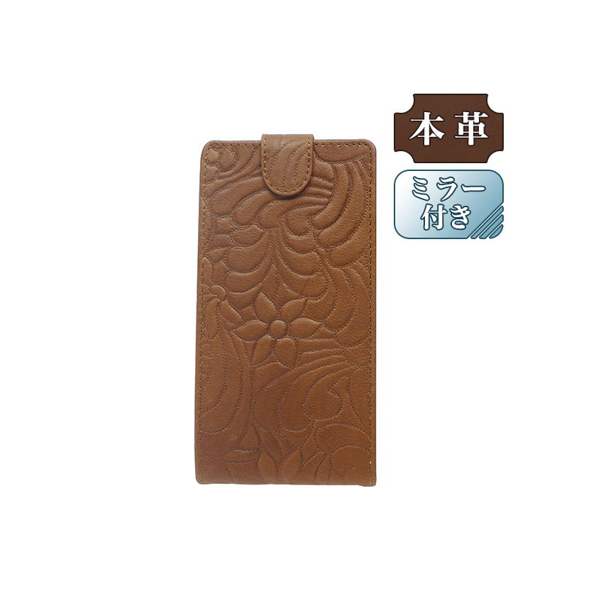 [ミラー付き] LG URBANO L03 au 専用 手帳型スマホケース 縦開き 牛皮 花モチーフ 落ち着いた ブラウン (LW153-V) [キャンセル・変更・返品不可][代引不可][同梱不可]