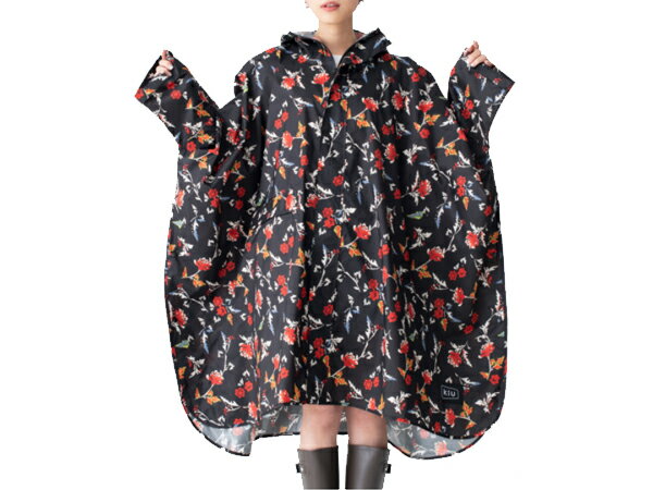 キウ レインポンチョ 袖つき ツバ付きフード レディース メンズ Kiu NEW STANDARD RAIN PONCHO 高い耐水性 撥水 防水 フェス・アウトドアに ブラック レッド ベージュ ネイビー チェック カモフラ ペイズリー フラワー アニマル オルテガ バンダナ ダイダイ
